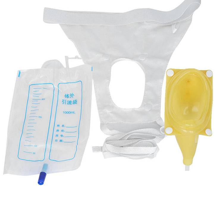 3. Amabhanti amabini amade eengubo ezinxantathu aphantsi, ahlukaniswe phakathi kwemilenze emibini, kwaye adibene ngasemva nangaphezulu kunye namabhanti amabini amafutshane kwindwangu engunxantathu. Ukutshintshwa kokukhutshwa kwisikhwama somchamo kuvuliwe, kwaye isikhwama somchamo sixhonywe kwicala lokulala, emva kokuba i-catheter idibaniswe nesikhwama somchamo, ungayisebenzisa.