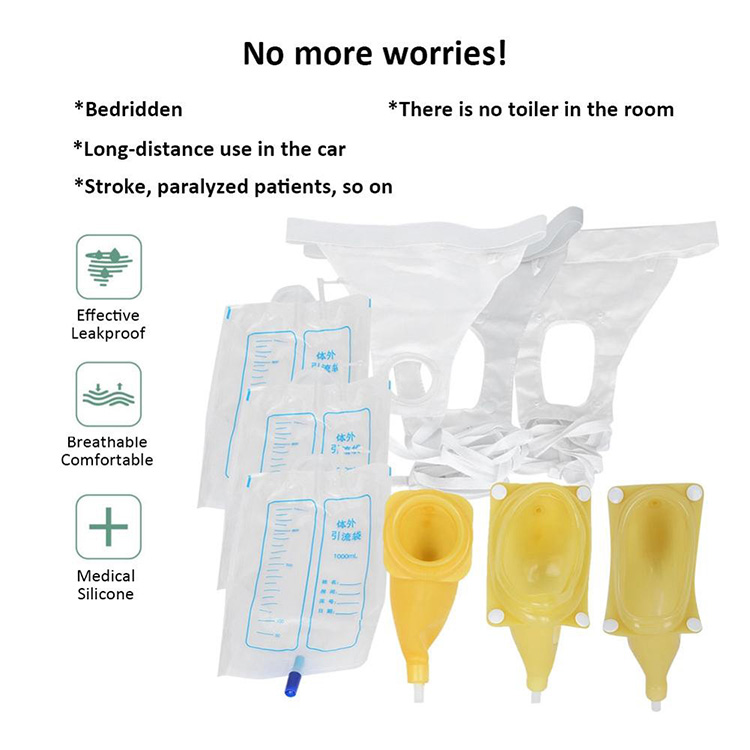 Ibhegi yeSilicone yoMqokeleli woMchamo wabantu abadala kunye neengxowa zeCatheter ye-Urine yaMadoda aMadoda Abasetyhini abaDala beToilet Pee:
